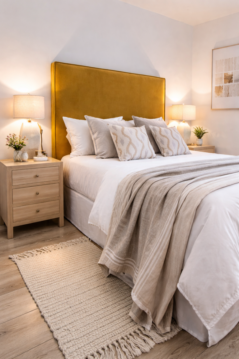 Trabajamos con una cuidada selección de tejidos y acabados para crear soluciones a medida que aportan calidez, equilibrio y personalidad al espacio. Cada detalle se adapta a tu estilo y se integra de forma armónica en el conjunto, elevando el resultado final con elegancia.